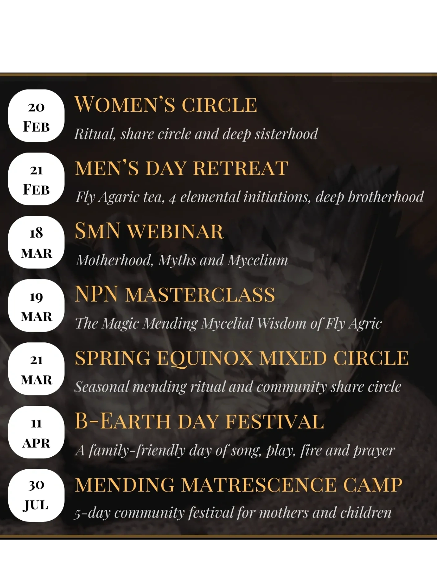 A mixed gender reterat for mending relationships to the land and to each other.
